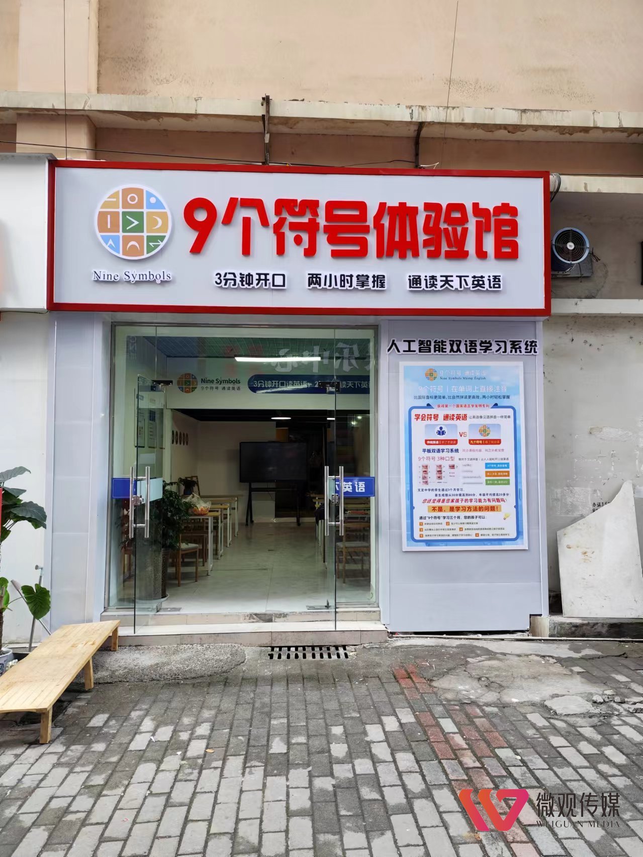 9个符号是一种全新的英语学习方法,总部位于湖南省长沙市,获得了国家第一个语言学专利。